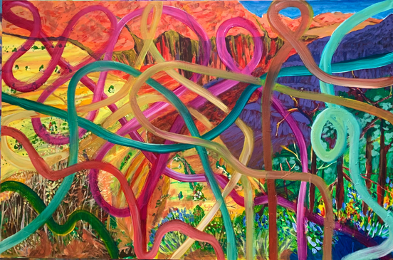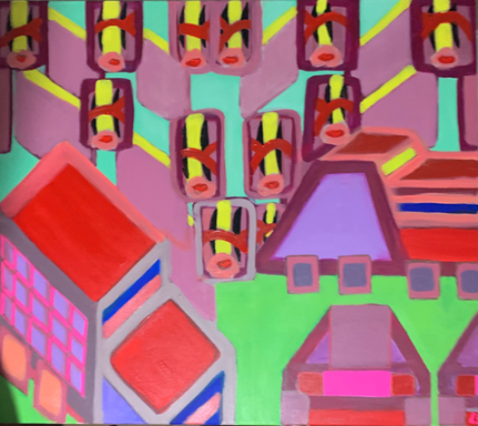Were you born here ? 60 inch x 70inch.... by artist luxman 2026 acrylic on canvas. This art work to highlight in a decaying planet with climate change and extreame weather,war and famine around the world. Movement of people for safe home and existence. In the west movenet of people for economics and better life has been corner stone of industrial revolution in the modern era. But many still ask the question were you born here. luxman 2026.