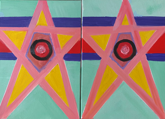 Thelma and louise by artist luxman 2025. acrylic on canvas.