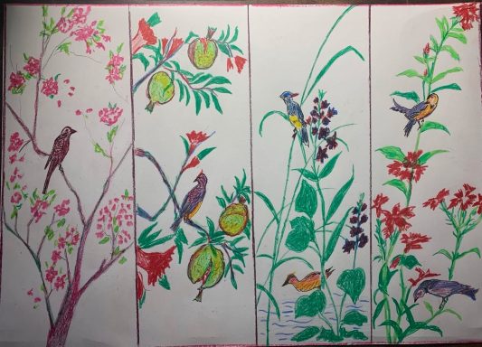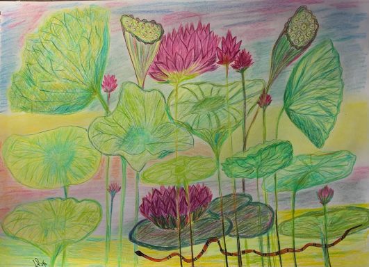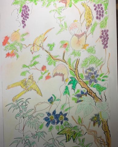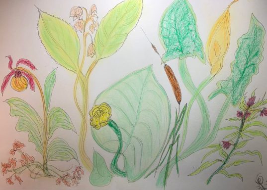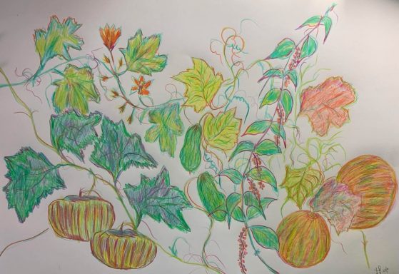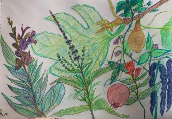 Below;Botanical drawings.